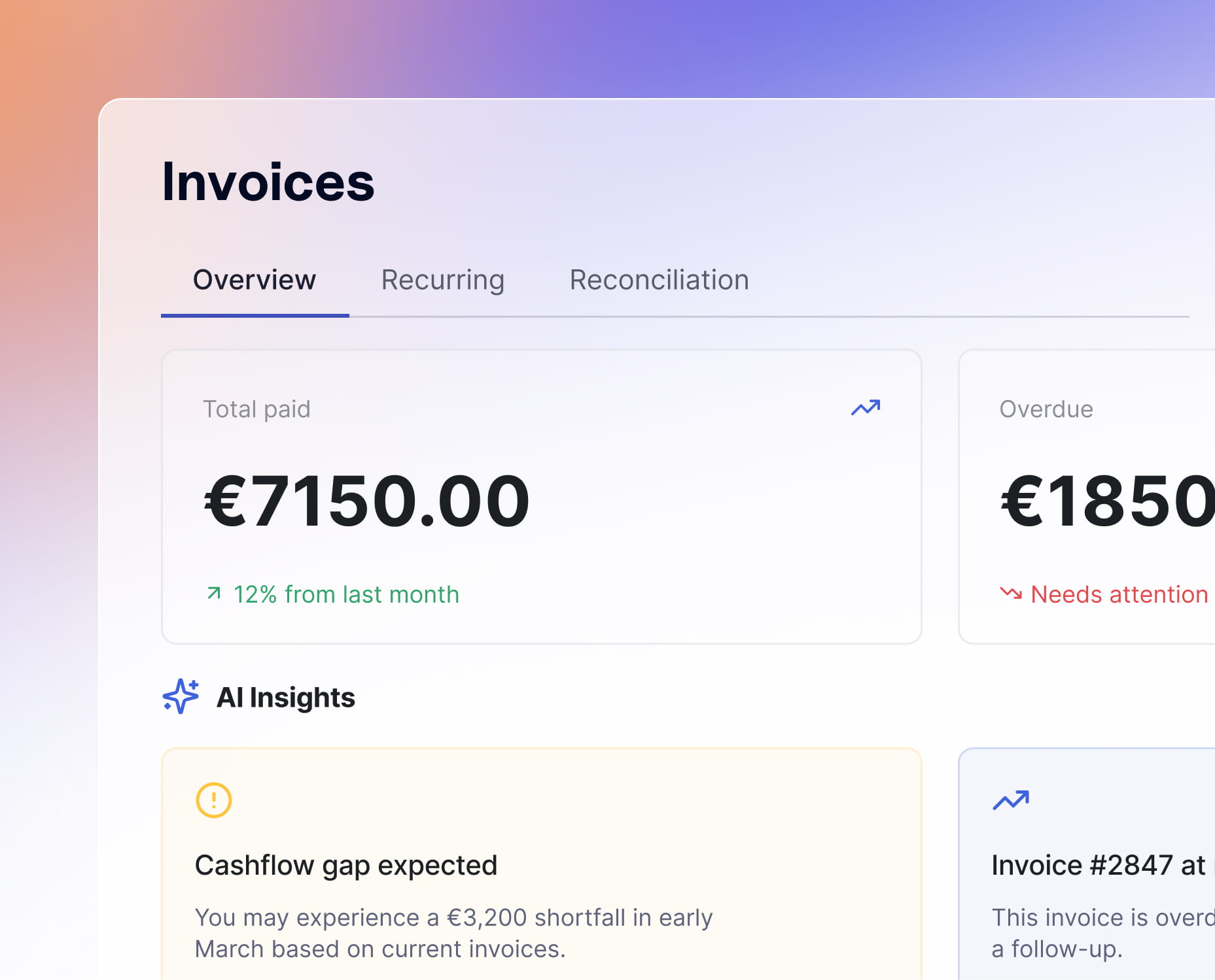 When your invoicing and your bank account live in the same platform, reconciliation happens automatically. Payments match to invoices without manual effort.